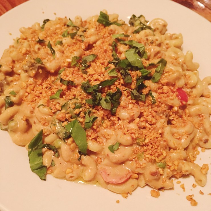 Our friends took us here on our last night in NOLA – it was out of the way, in Bywater (and their friend had a car). Depending on where you’re based, it’s probably best to get a taxi here and back. The Sneaky Pickle is a neighbourhood-style restaurant, small and cosy. And the food is amazing! Of course they have pickles, but they also have food for omnivores too (and cook the meat in pans that don’t go near the vegan food). Even if you are omni, it’s worth trying the vegan fare here, because it is truly delicious. I chose the famous vegan mac and cheese, and it was the best mac and cheese I’ve ever had – and I do mean even when I was an omnivore!